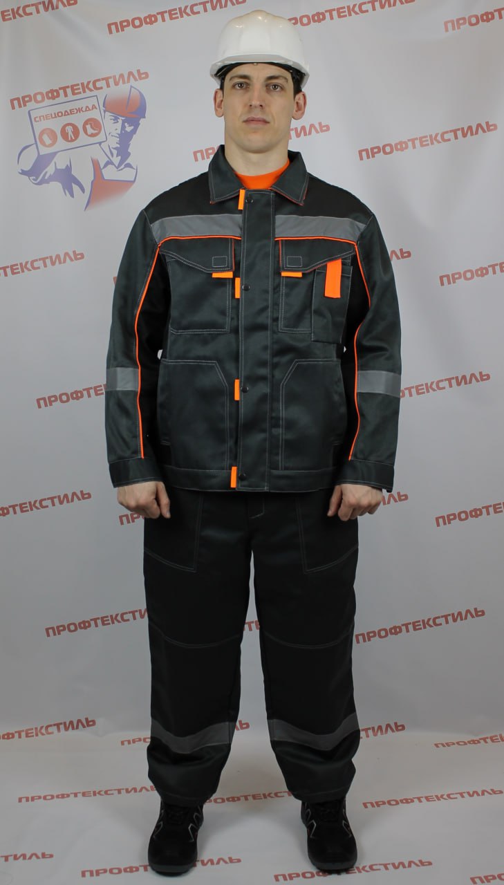 Цвет: основной темно-серый в сочетании с чёрным, отделка оранжевым кантом. Двойная отстрочка швов и основных элементов светло серой контрастной усиленной нитью.