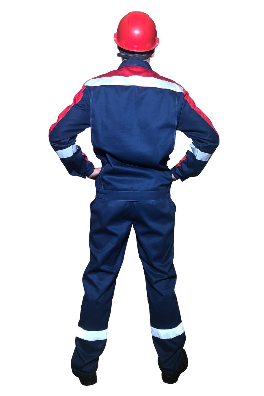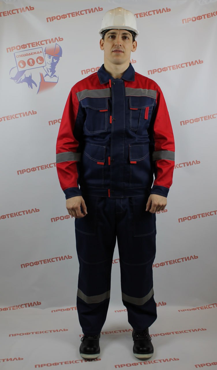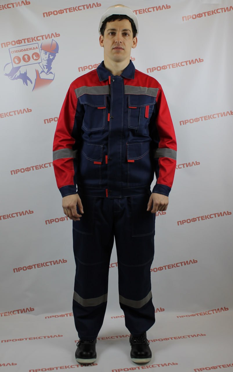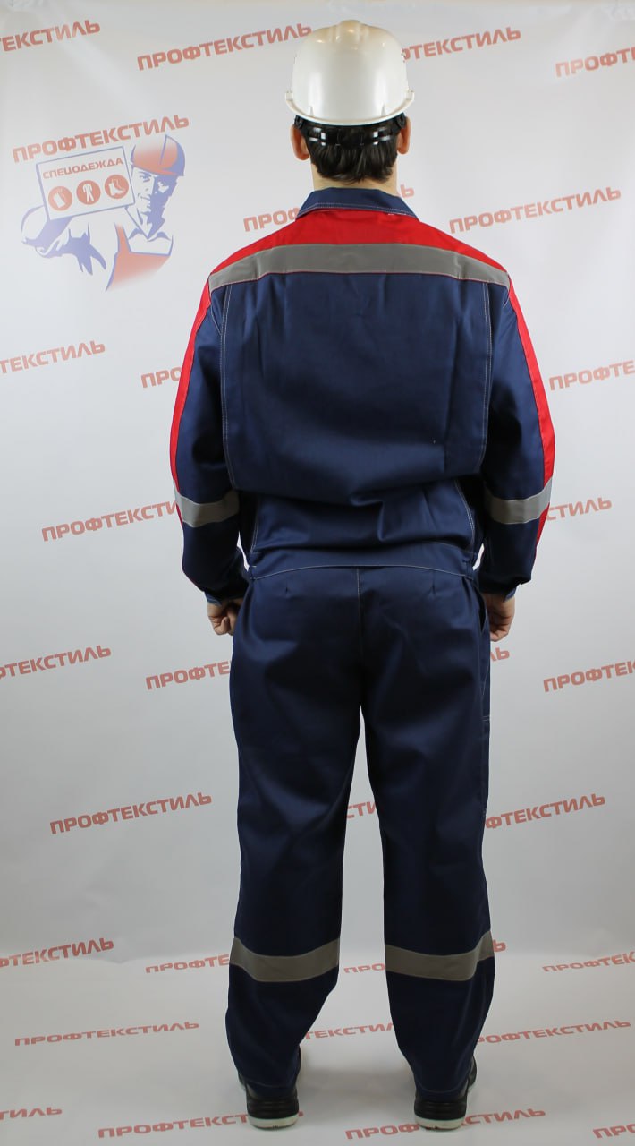 Цвет: основной темно-синий в сочетании с красным. Двойная отстрочка швов и основных элементов светло серой контрастной усиленной нитью.
